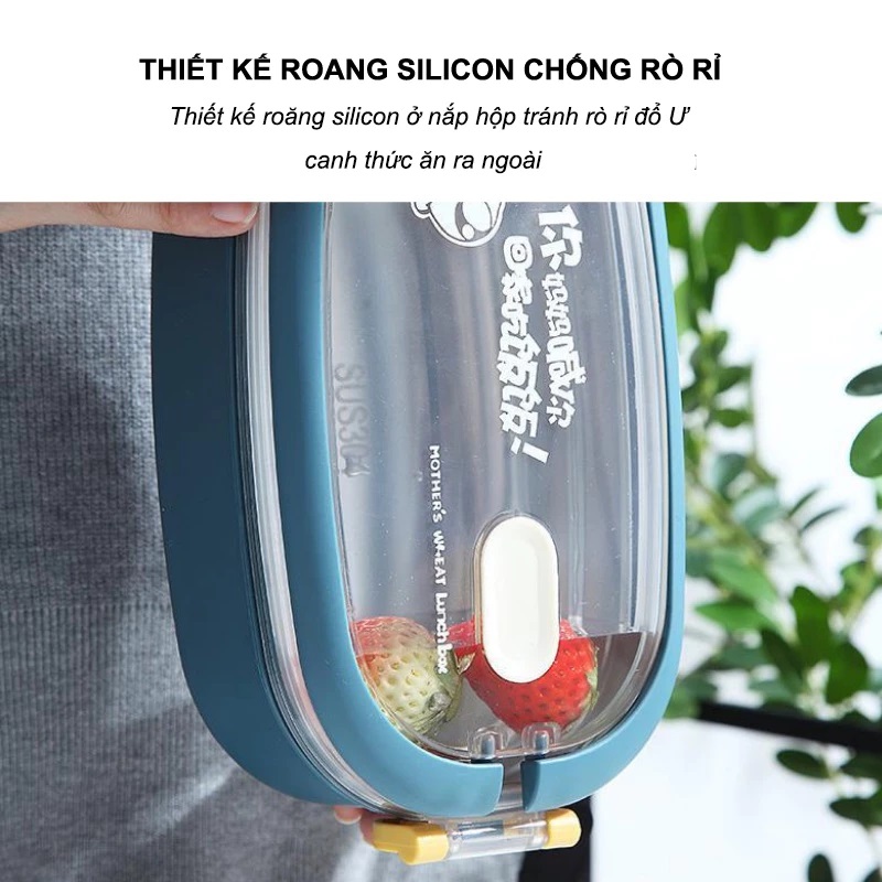 ĐẶC ĐIỂM NỔI BẬT - Hộp có dung tích 1000ml chia 3 ngăn, phân biệt từng món thuận tiện, thoải mái đựng cơm và thức ăn mang đi học, đi làm. - Làm bằng chất
