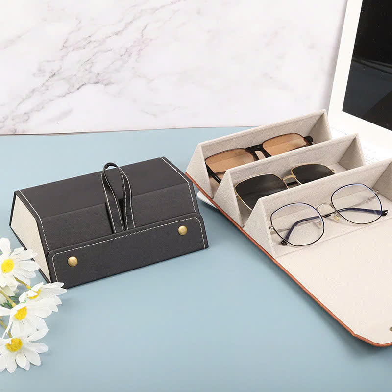 -Hộp da PU đựng mắt kính 3 ngăn cuộn tròn , có nút bấm tiện lợi ,có thể treo hoặc xách , mang đi mọi nơi , bảo vệ mắt kính khỏi bụi và hư hỏng