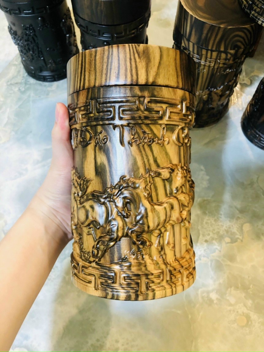 Mua tại TiktokHộp đựng trà ,chè được làm bằng chất liệu gỗ mun hoa ,tự nhiên 100% Kích thước cao 20 đk tròn 11cm _ Hộp đựng trà ,chè được trạm khắc nhiều hoa văn khác nhau vô cùng tỉ mỉ ,tinh sảo kỳ công ,Đi hầu hết tất cả mọi chi tiết góc ngách của hộp trè ,chà đều được ngọt tỉa chỉnh sửa hoàn toàn bằng tay thủ công .Đồng thời hộp đựng trà ,được kiểm định kỹ lưỡng như cho vào thẩm sấy cho gỗ khô kiệt .Mục đích trống dập nứt vênh mo mối mọt .Kết hợp vời trà nhám đánh giấy giáp nhiều lần cho sạch sẽ ,Sờ mát lạnh rồi cho vào phun lót làm bóng mờ ,để giữ lại mầu sắc vân gỗ tự nhiên ,Hộp đựng trà được làm và hoàn thiện do bàn tay khối óc tài hoa ,Từ những người thợ giàu kinh nghiệm cũng như tay nghề cao trong làng nghề truyền thống .