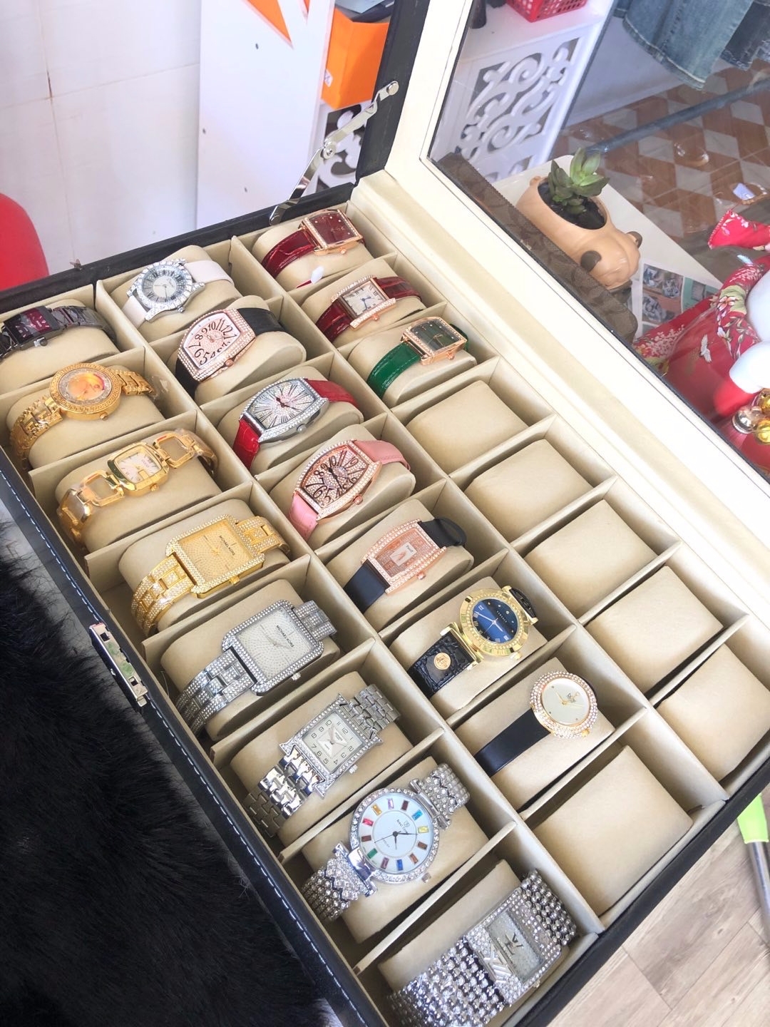 Bạn có khoảng 6-8 chiếc đồng hồ và phụ kiện trang sức như nhẫn, vòng ùng với đó bạn thích hộp có mặt kính để nhìn thấy phụ kiện bên trong hộp và hộp có