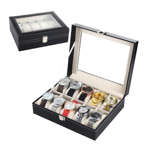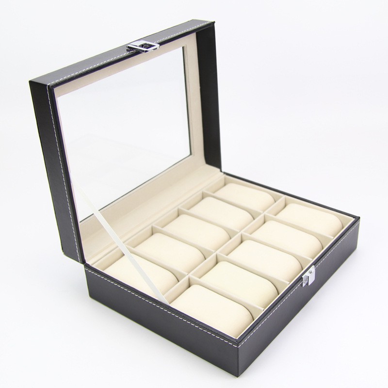 - Hộp đựng đồng hồ đeo tay làm bằng da cao cấp được thiết kế 10 ngăn với kích thước vừa đủ đựng số lượng đồng hồ tương ứng.