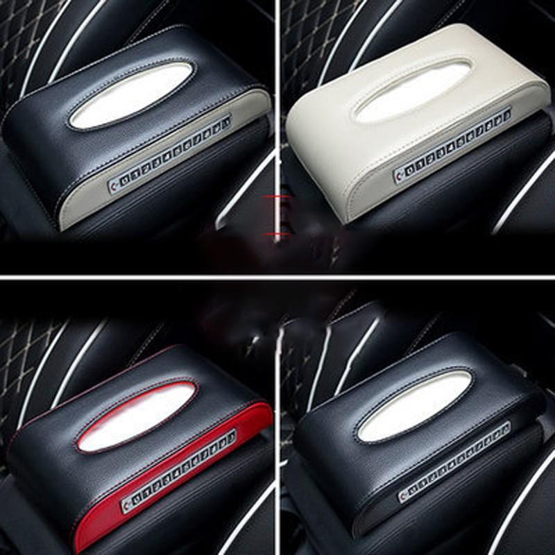 ✨Hộp đựng khăn giấy chất liệu da trên ô tô và bàn làm việc,kèm bảng số điện thoại