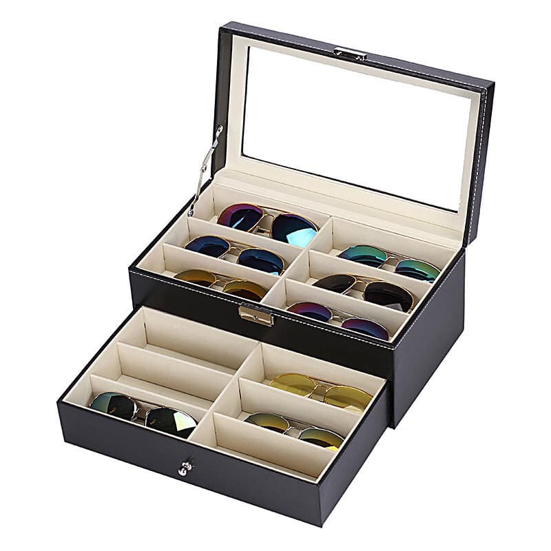 - Hộp Đựng Mắt Kính 12 Cái SAIKE S838 Bọc Da Màu Đen 2 Tầng