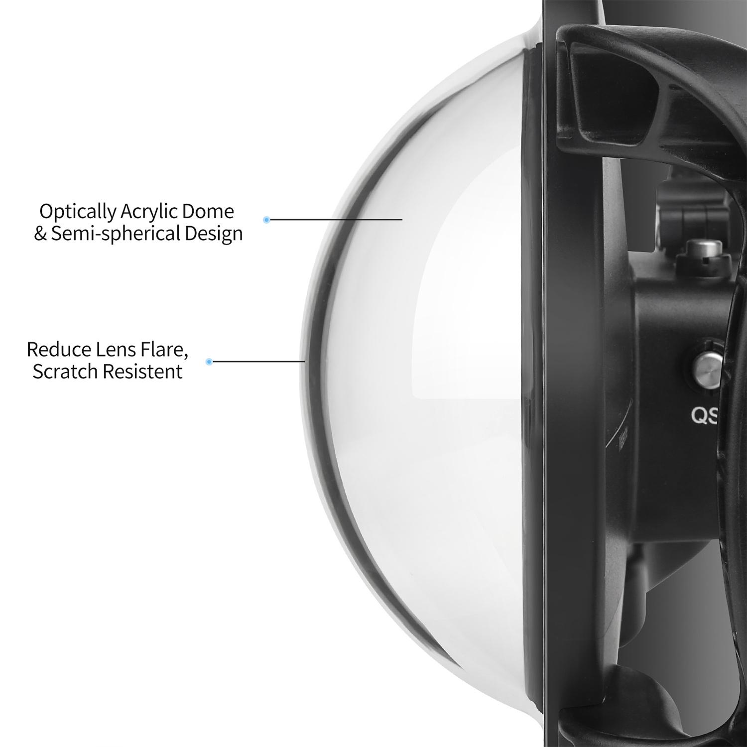 Features: Designed for DJI Osmo Action camera, to develop more beautiful world. Waterproof case and dome are integrated in one Design, which prevents water leakage Optically acrylic dome cover design, light tranasmittance up to 93%.