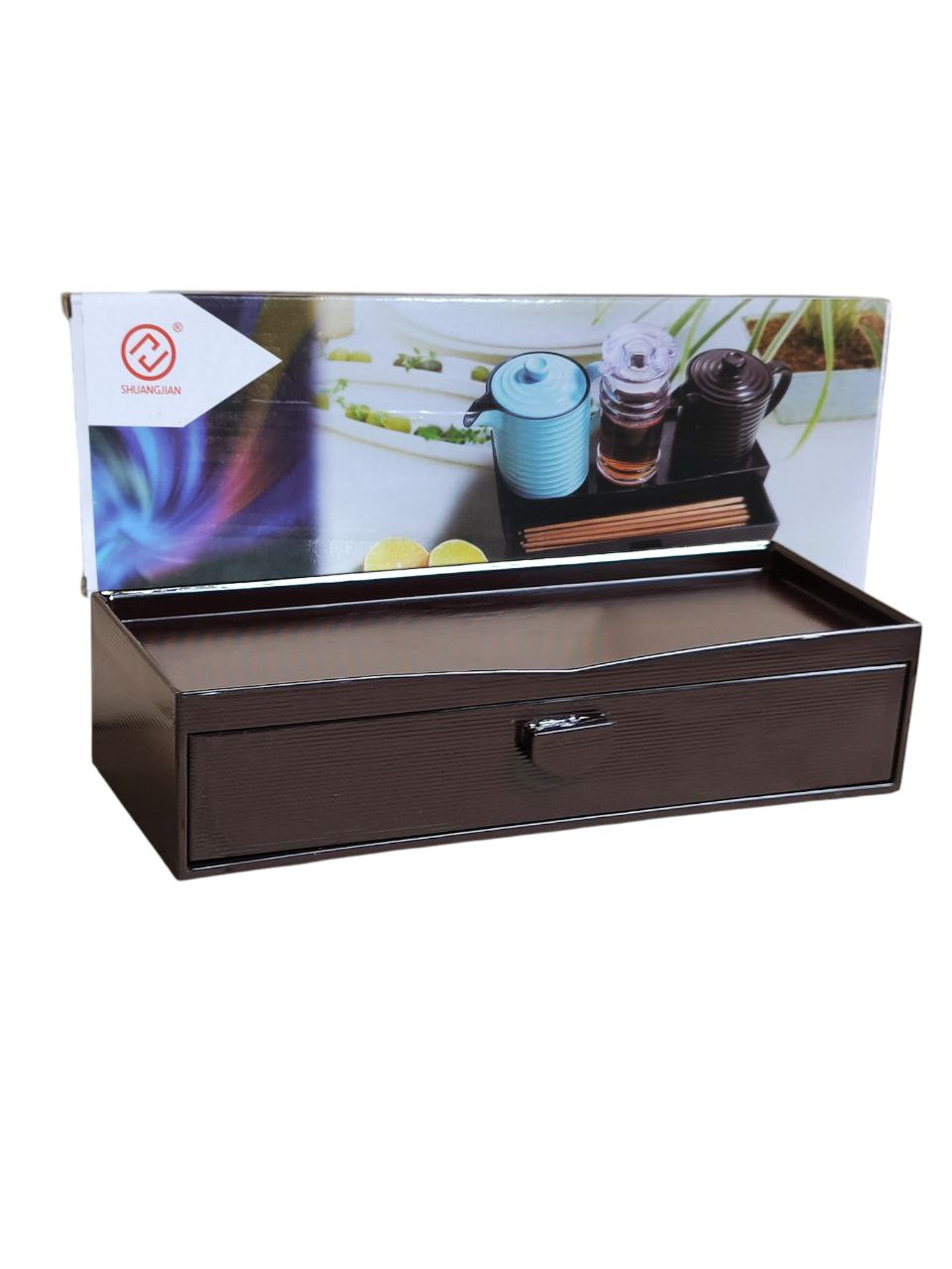 🛠️ Thiết kế 2 in 1 thông minh: Đựng đũa + kệ để chai lọ gia vị.