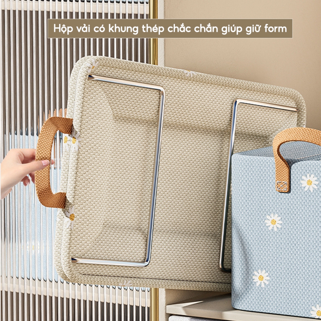 - Chất liệu hộp vải phủ Poli dày dặn cao cấp chống thấm, đường may tỉ mỉ, đẹp, hoa văn được in theo công nghệ cao.