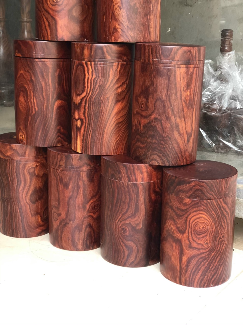 _ Hộp đựng trà ,đựng trà được làm bằng chất liệu gỗ trắc tự nhiên 100% ,Và được làm bóng mờ giữ lại vân gỗ tự nhiên Kích thước: Cao 20cm x đường kính 11cm