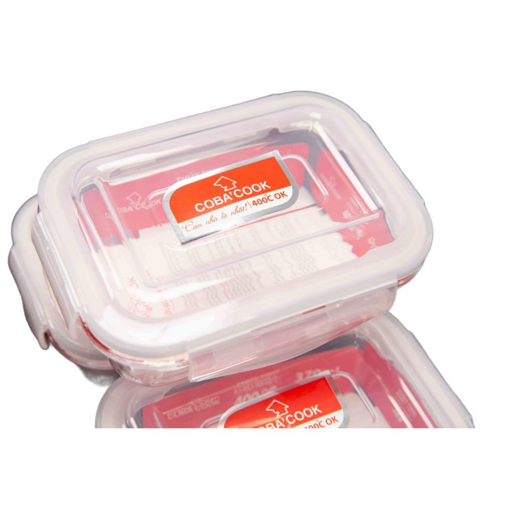 BỘ HỘP ĐỰNG THỰC PHẨM THỦY TINH CHỊU NHIỆT GỒM: 2 HỘP HÌNH CHỮ NHẬT 370ML (KHÔNG KÈM TÚI) - CCL32 - Chất liệu : Thủy tinh chịu nhiệt,nắp nhựa PP - Màu sắc :