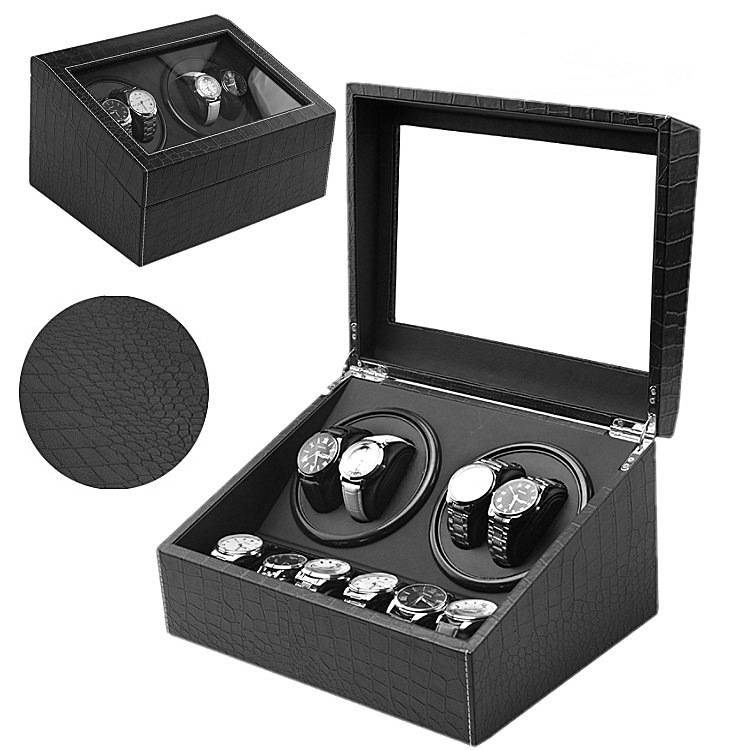 Hộp Xoay Đồng Hồ Cơ SAIKE S4602 Mẫu 4 Xoay 6 Tĩnh Vỏ Da Cá Sấu Màu Đen