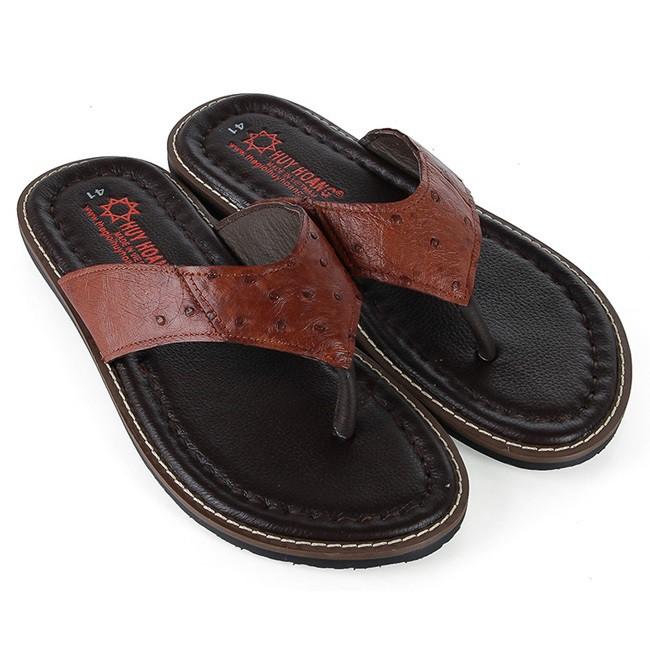Thông tin sản phẩm : - Dép nam Huy Hoàng được làm từ chất liệu da đà điểu thật 100% nên càng sử dụng lâu bề mặt da sẽ càng bóng đẹp tự nhiên. da đà điểumềm mại sẽ hạn chế tối đa tình trạ...