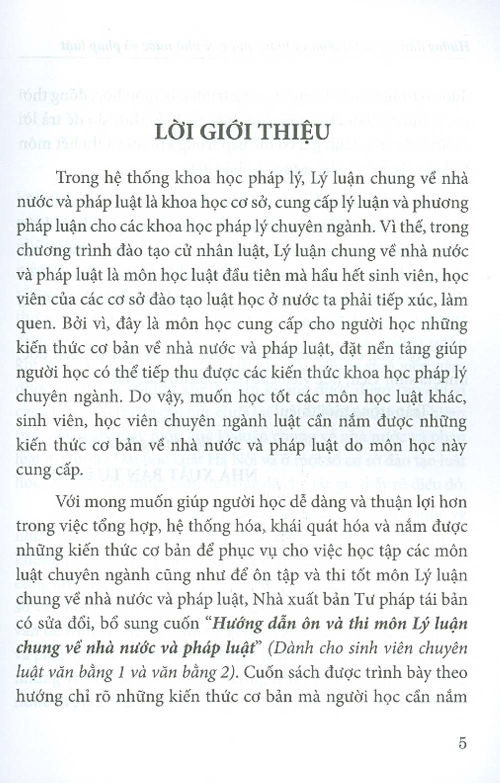 Với mong muốn giúp người học dễ dàng và thuận lợi hơn trong việc tổng hợp , hệ thống hóa, khái quát hóa và nắm được những kiến thức cơ bản để phục vụ cho việc học tập các môn chuyên ngành và thi tốt môn Lý luận chung về Nhà nước và Pháp luật, Nhà xuất bản Tư pháp bổ sung cuốn: "Hướng dẫn ôn và thi môn Lý luận chung về Nhà nước và Pháp luật" (Dành cho sinh viên chuyên luật văn bằng 1 và văn bằng 2)