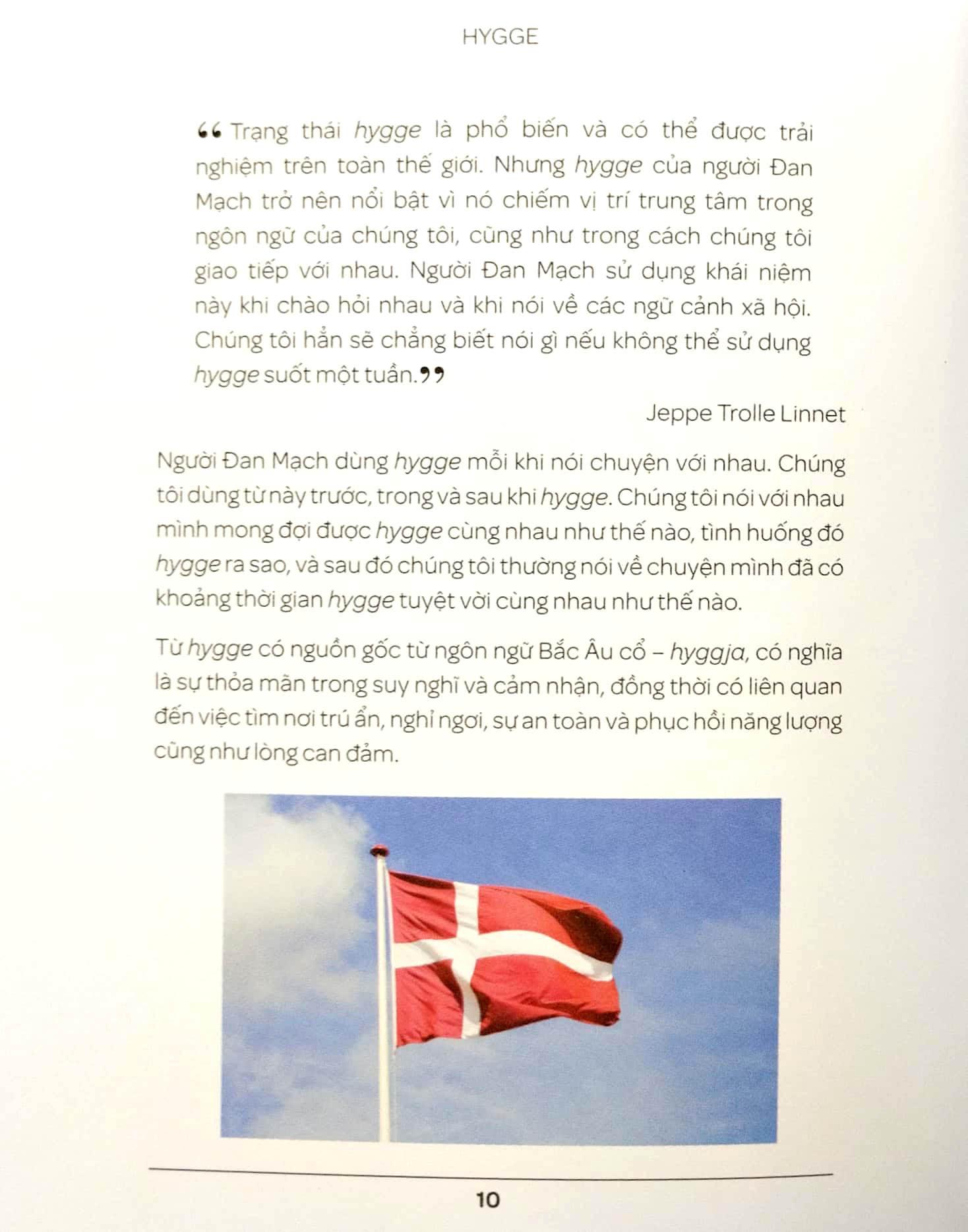 Theo Giáo sư Jeppe Trolle Linnet, chuyên gia nghiên cứu về Hygge, Hygge là một từ trong tiếng Đan Mạch, hàm chứa toàn bộ các ý nghĩa mà con người chúng ta vô cùng trân trọng. Hygge trong ngôn ngữ Bắc Âu cổ là hyggja, có nghĩa là sự thỏa mãn trong suy nghĩ và cảm nhận. Đồng thời, có liên quan đến việc tìm nơi trú ẩn, nghỉ ngơi, sự an toàn và phục hồi năng lượng cũng như lòng can đảm. Đối với nhiều người Đan Mạch, hygge là mục tiêu cần phấn đấu đạt được. Nó như kim chỉ nam dẫn chúng ta đến những khoảnh khắc hạnh phúc nho nhỏ trong cuộc sống hàng ngày.