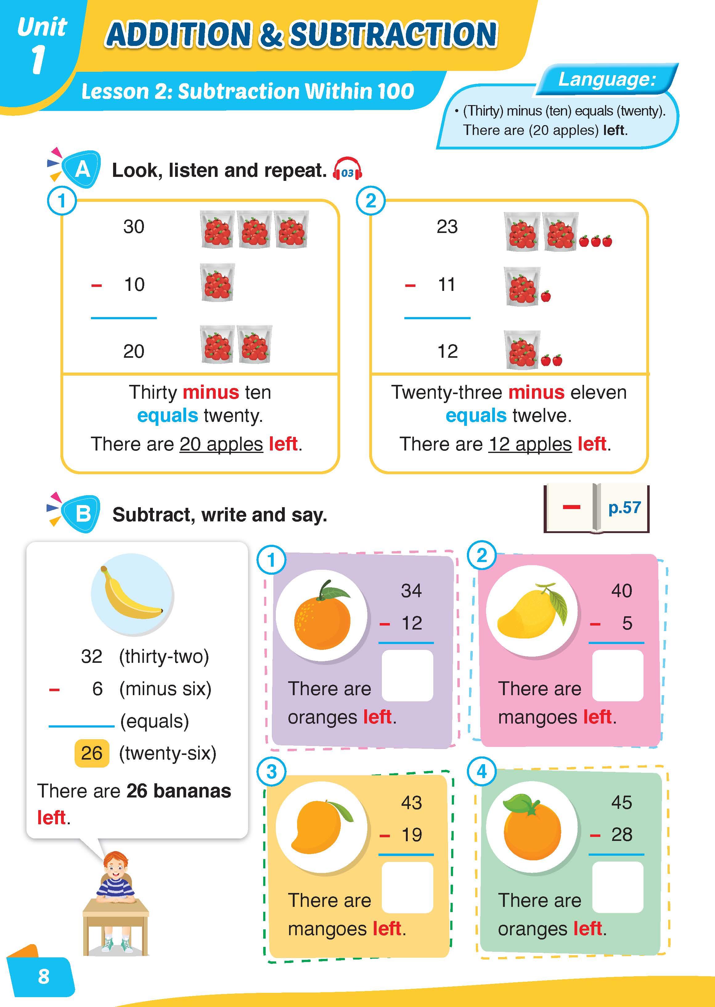 Bộ sách i-Learn English for Math gồm 5 cấp độ dành cho cấp tiểu học nhằm cung cấp cho học sinh nền tảng vững chắc về ngôn ngữ toán học, kiến thức và các kỹ