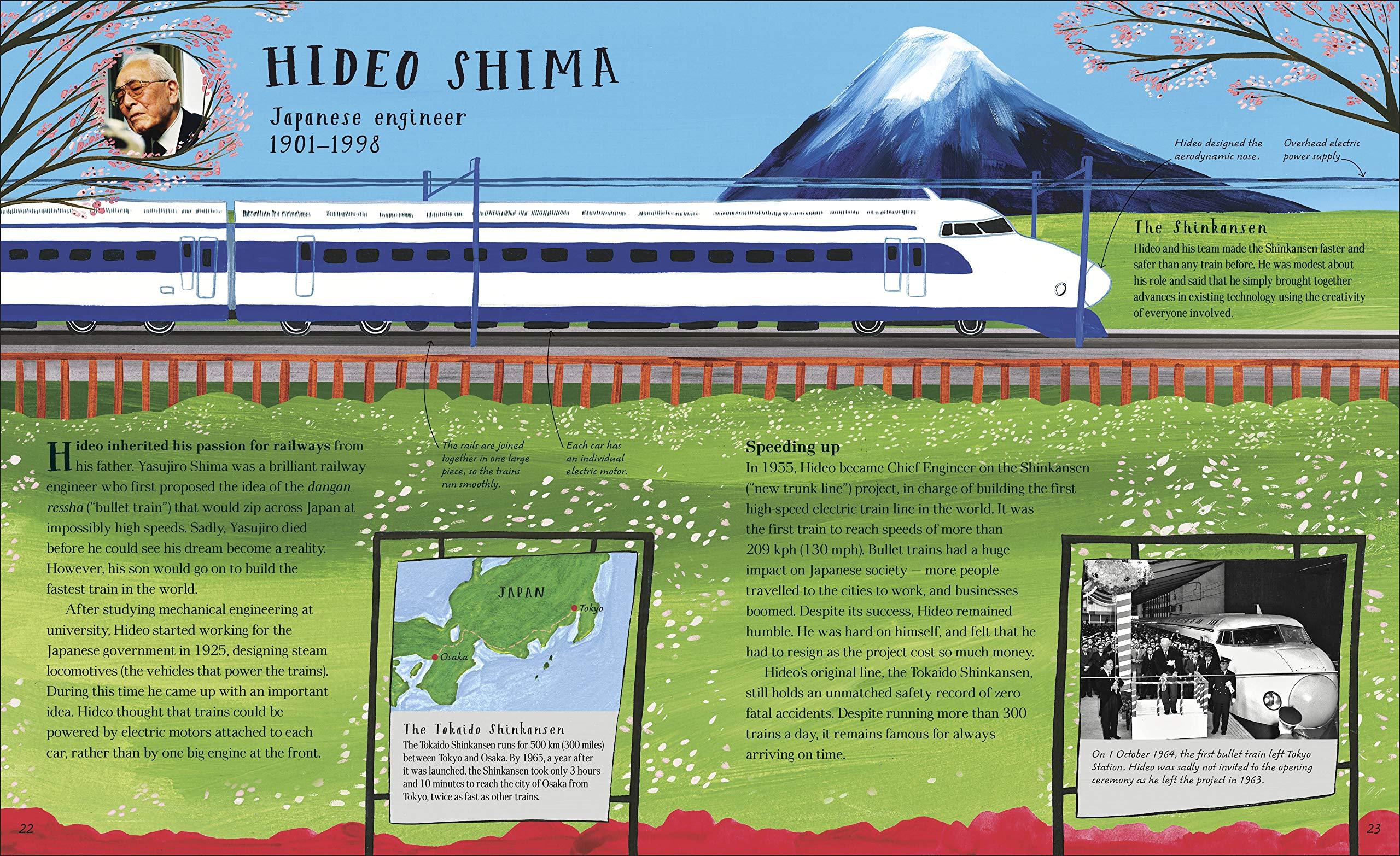 Step into Leonardo da Vinci's workshop, relax on board Hideo Shima's speedy bullet train, and join movie star Hedy Lamarr to bounce ideas around in between takes. Inventors looks at the towering achievements of more than 50 inventors in great detail. The stories are as unusual as they are unique. From Mr. Kellogg, who accidentally created cornflakes after leaving grains boiling for too long, to the ancient Turkish polymath Ismail al-Jazari, who decided the best way to power a clock was with a model elephant, to Sarah E. Goode's fold-up bed space-saving solution--the inventors of this book have all used tons of creativity to find ways to improve our world. These groundbreaking inventions include the very earliest discoveries to modern-day breakthroughs in science, food, transportation, technology, toys, and more.