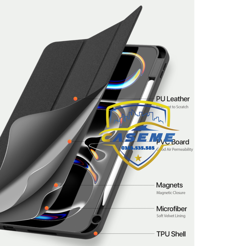 Mua tại Tiktok[iPad Pro M4] Bao Da Dành Cho iPad Pro 11 inch M4 2024, iPad Pro 13 inch M4 2024 Dux Ducis Domo Series Có Khe Cắm Bút - Hàng Chính Hãng