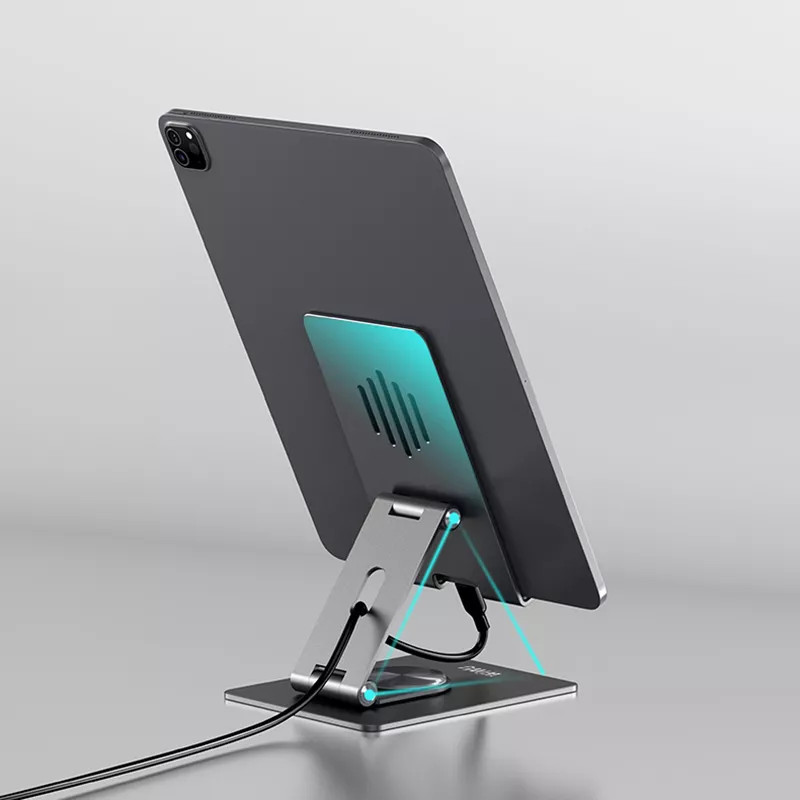 Đặc điểm nổi bật: - Chất liệu hợp kim nhôm nguyên khối cao cấp - Kết hợp Silicon pad phần đế, mặt tựa tăng cường bảo vệ máy tính bảng - Thiết kế công thái