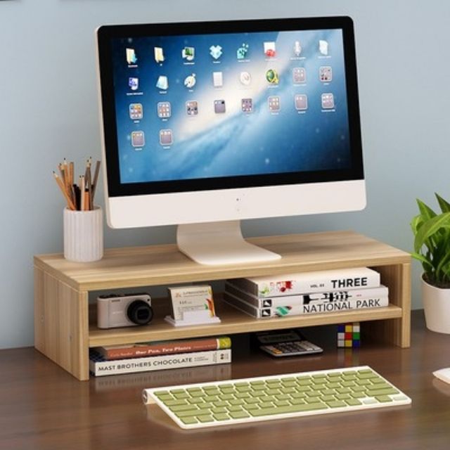 Kệ đựng laptop, kệ máy tính để bàn 1 tầng, kệ để laptop trang trí bàn học cải thiện tư thế ngồi chất liệu gỗ