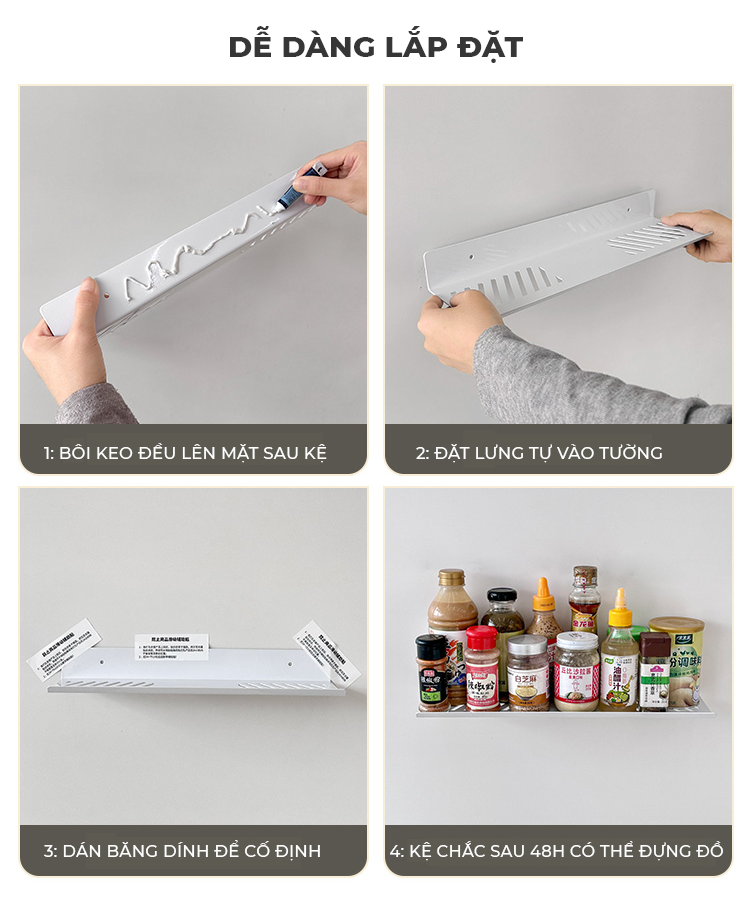 Kệ Đựng Gia Vị, Mỹ Phẩm Treo Tường Không Khoan Đục, Kệ Để Đồ Nhà Bếp