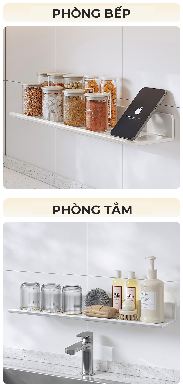 Công năng: Là mẫu kệ treo tường có thiết kế đa năng giúp bạn có thể sắp xếp đồ dùng ở mọi nơi. Đặc biệt phù hợp với không gian phòng bếp và phòng tắm