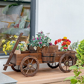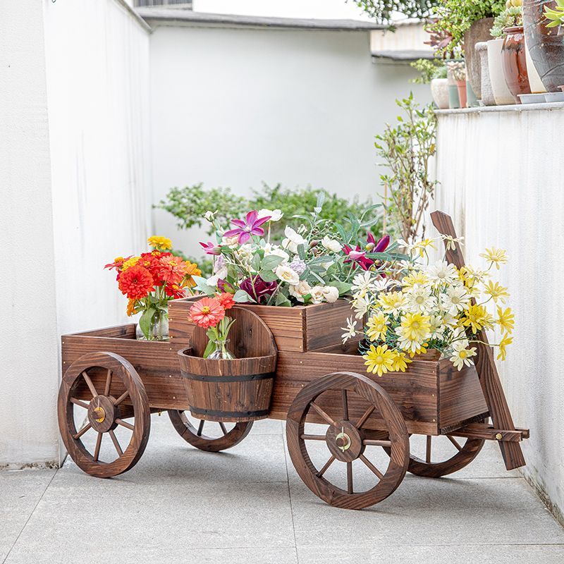 ✨Kệ gỗ để chậu hoa cây cảnh trang trí nhà cửa sân vườn có bánh xe di chuyển tiện lợi kiểu dáng vintage cổ điển màu sắc tự nhiên, thân thiện với môi trường