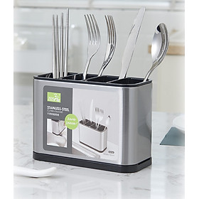 Kệ để dao thớt đũa muỗng nắp đa năng, chất liệu inox cao cấp chống gỉ sét, có khay đựng ráo nước