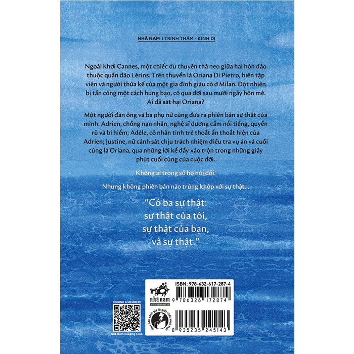 Ngoài khơi Cannes, một chiếc du thuyền thả neo giữa hai hòn đảo thuộc quần đảo Nérins. Trên thuyền là Oriana Di Pietro, biên tập viên và người thừa kế của một gia đình giàu có ở Milan. Đột nhiên bị tấn công một cách hung bạo. Cô qua đời sau mười ngày hôn mê. Ai đã sát hại Oriana?