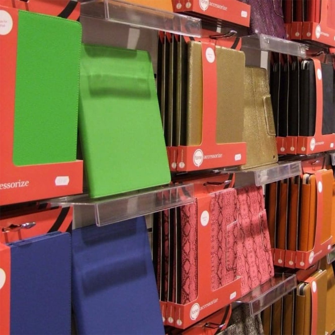 Kệ Mica cài Slatwall có khe gắn bảng giá là phụ kiện không thể thiếu đi kèm với bảng gỗ xẻ rãnh Slatwall & Dash Panel giúp mang đến sự gọn gàng & chuyên nghiệp cho hàng hóa trưng bày. Kệ Mica có kích thước 25x12cm, thường được ưa chuộng sử dụng trong các cửa hàng thời trang, shop phụ kiện, túi xách hay các cửa hàng bán lẻ …