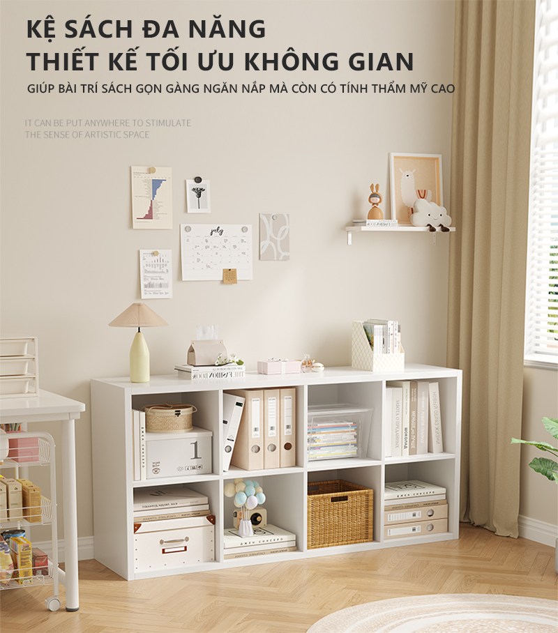 Công năng: Là mẫu kệ sách đa năng theo phong cách minimalism giúp bạn decor phòng cực xinh và hiệu quả