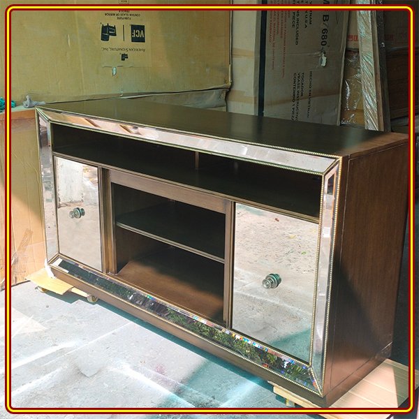 ✨Kệ Tivi kết hợp kính đính đồng Tundo màu trắng gương 163 x 51 x 86 cm