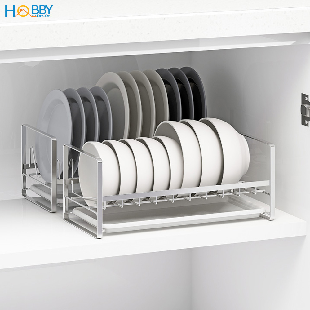 Kệ úp chén đĩa 2 tầng inox 304 Hobby home decor UCD có khay hứng nước Thông tin kỹ thuật - Chất liệu chính: Inox 304 xước không rỉ sét - Có 2 khay nhựa