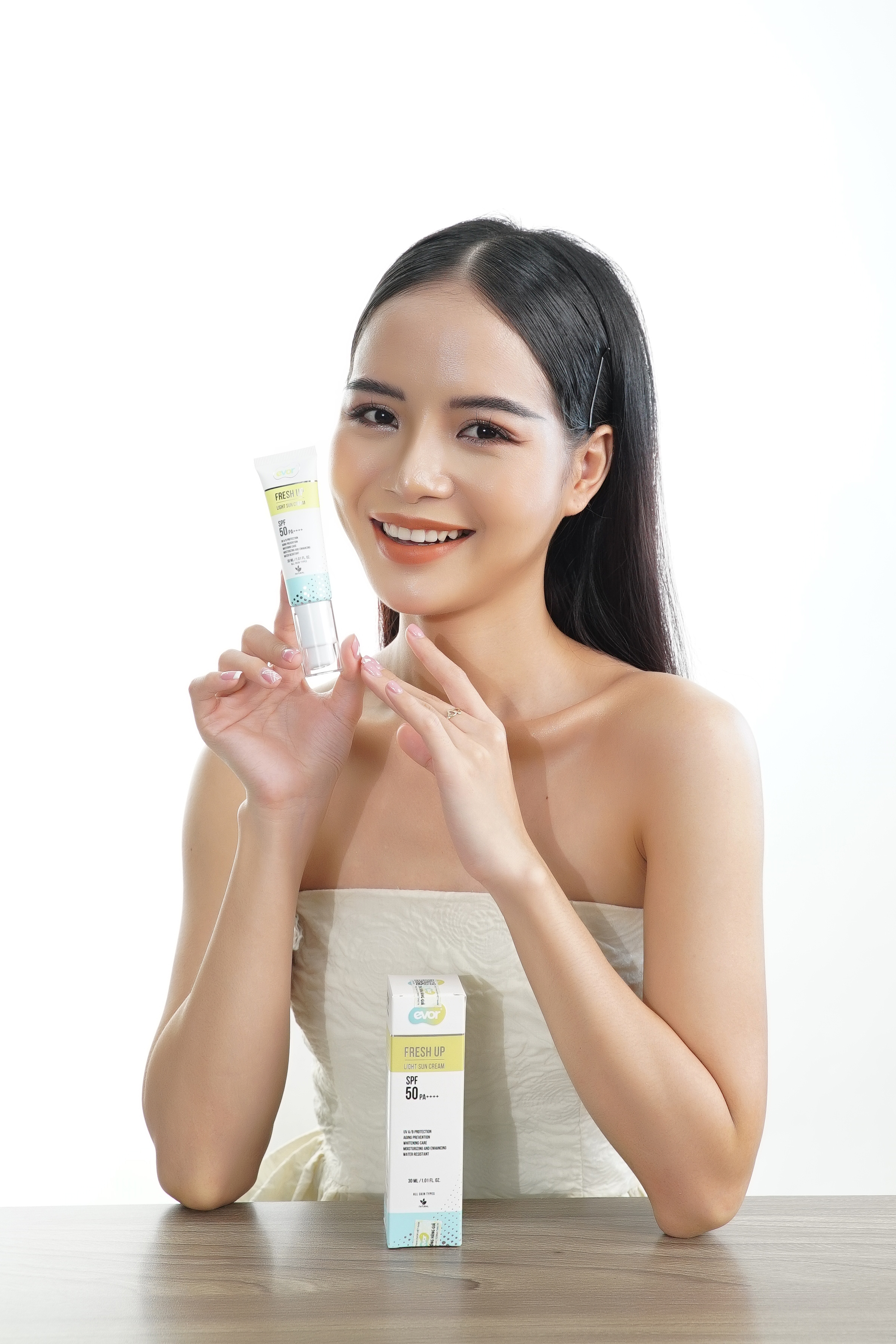 ✨Kem chống nắng makeup trẻ hoá dưỡng trắng - Fresh Up Light Sun Cream 30ml | EVOR