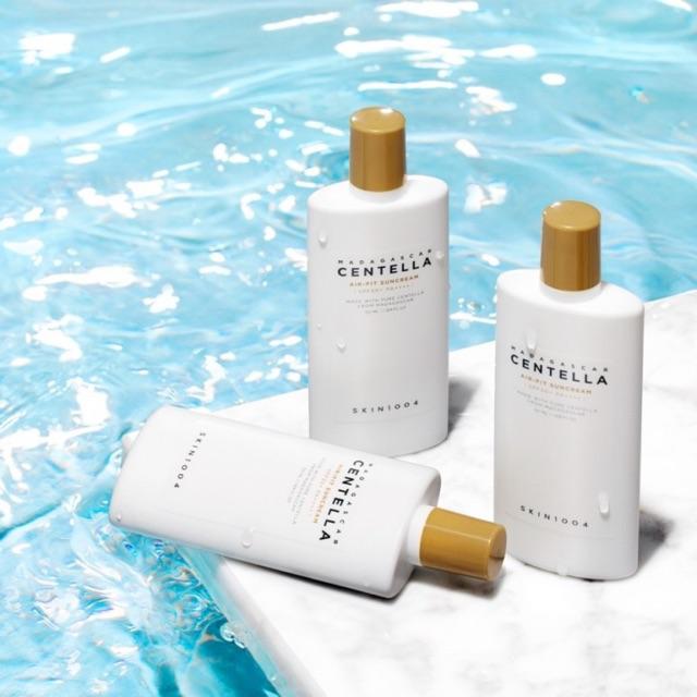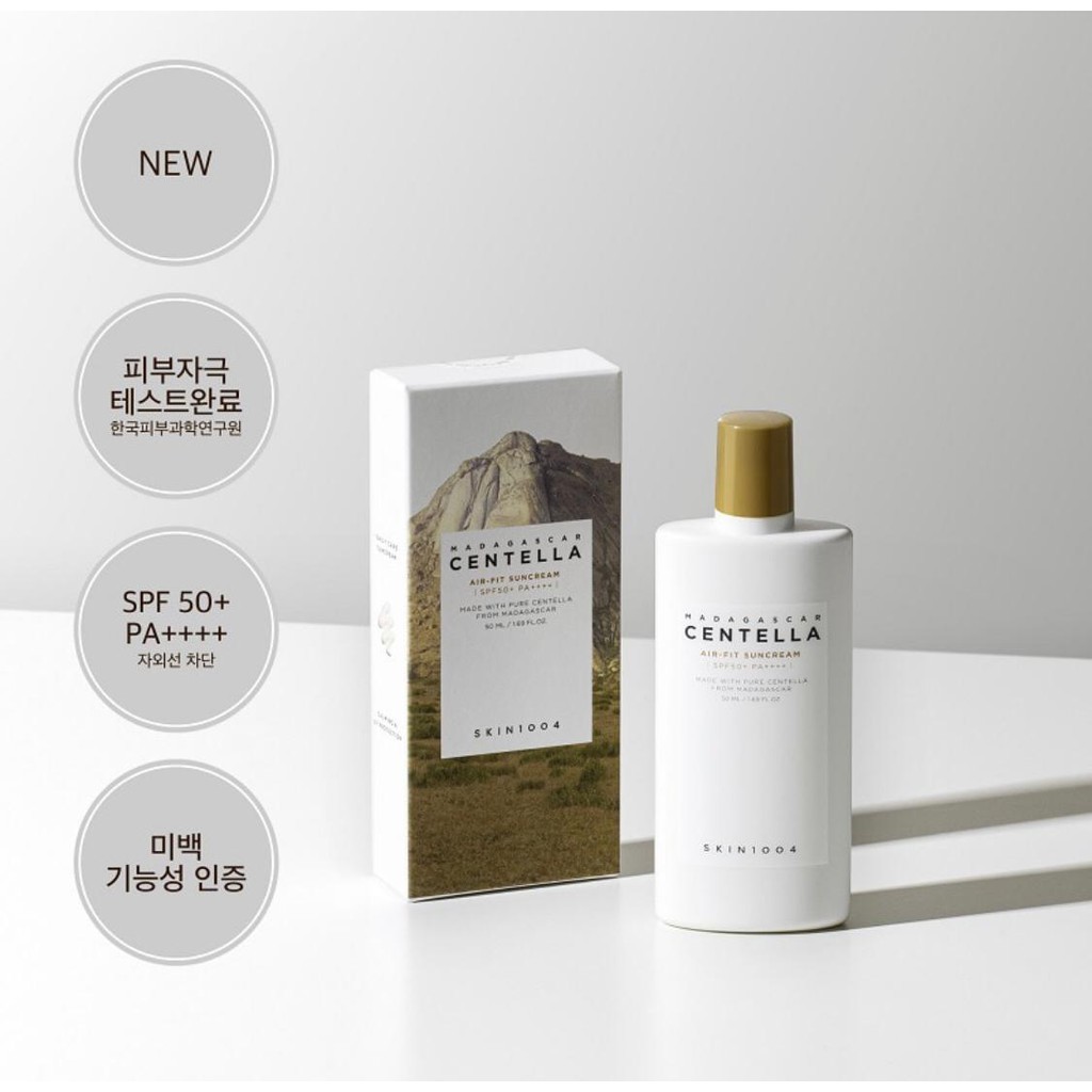 - Dành cho mọi loại da. Ánh nắng mặt trời là một trong những nguyên nhân hàng đầu dẫn đến lão hóa da sớm, bên cạnh quá trình lão hóa tự nhiên do vấn đề tuổi tác. Việc tiếp xúc thường xuyên quá mức với ánh nắng mặt trời sẽ khiến da mất đi Collagen và Elastin, đồng thời làm suy yếu đi quá trình tổng hợp Collagen mới, dẫn đến da mất đi độ đàn hồi và săn chắc vốn có, trở nên chùng nhão, chảy xệ, hình thành nếp nhăn… Ngoài ra ánh nắng mặt trời còn khiến da trở nên đen sạm, hình thành các đốm sắc tố như tàn nhang, thâm nám, đồi mồi… Vì thế, việc sử dụng kem chống nắng hằng ngày là cực kì quan trọng và là bước đầu tiên giúp ngăn ngừa lão hóa da sớm mà bạn tuyệt đối không thể bỏ qua! Tuy nhiên, có rất nhiều bạn “than phiền” về làn da quá nhạy cảm, da bị mụn không thể dùng được kem chống nắng, hoặc các loại kem chống nắng trên thị trường gây trắng da, bệch mặt, bóng nhẫy như chảo dầu… Thấu hiểu được nỗi lo lắng này, shop xin giới thiệu đến các bạn một “tân binh” mới toanh từ nhà Skin1004 đến từ Hàn Quốc, Kem Chống Nắng Skin1004 Madagascar Centella Air-fit Suncream SPF50+ PA++++. Công dụng: ✓ Chống nắng tối ưu với chỉ số lên tới SPF 50+ và PA ++++. ✓ Cấp ẩm và giữ cho da luôn mềm mại suốt 24 giờ năng động. ✓ Công thức lành tính không chứa dầu, và đặc biệt là không có Parabens. ✓ Chống thấm nước, không lem, không trôi bởi mồ hôi hay nước. ✓ Không bết dính, nhờn hay rít mang lại cảm giác cực kỳ dễ chịu. Thành phần: