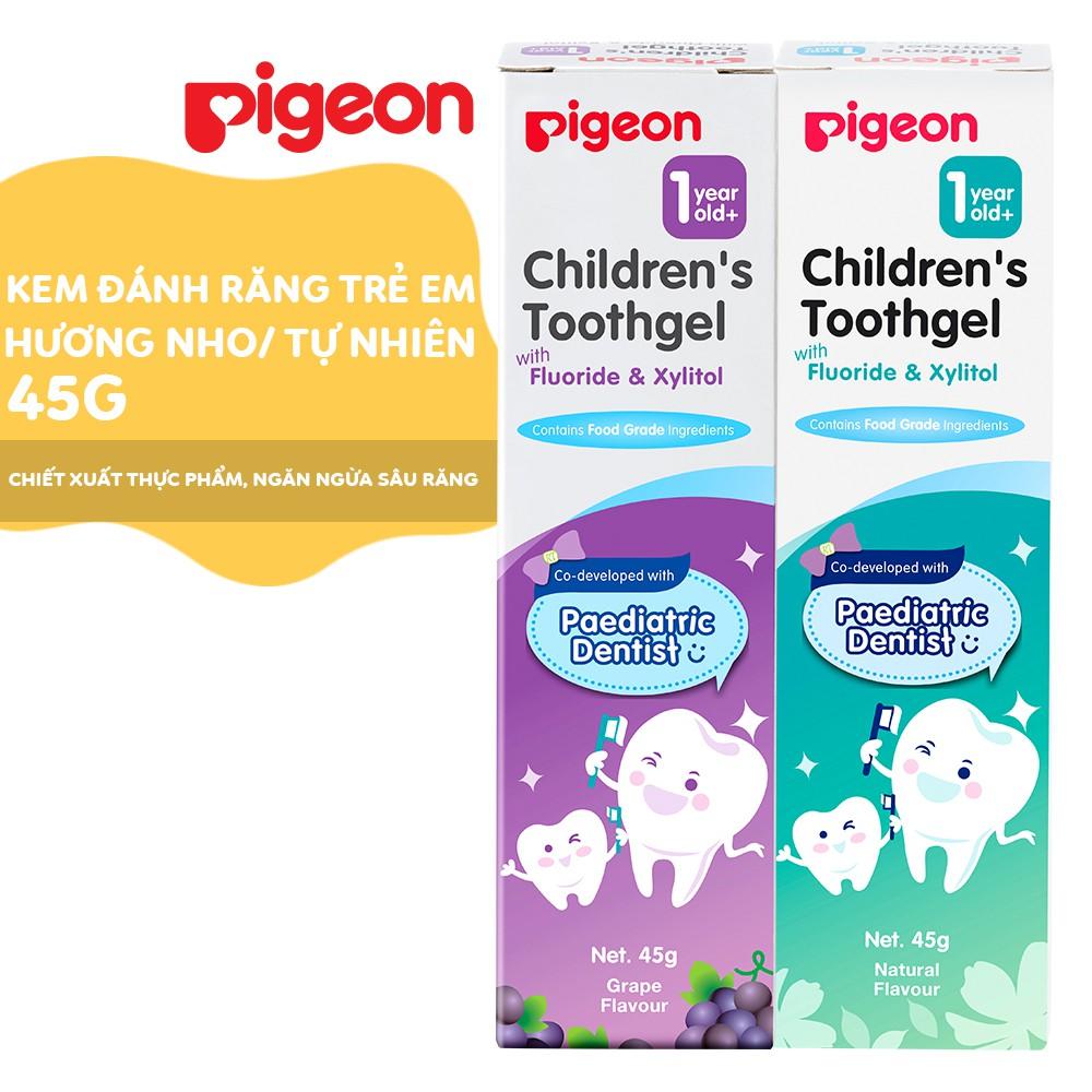 Với thành phần chiết xuất từ thực phẩm, có chứa Xylitol tự nhiên với hàm lượng Flouride thấp, kem đánh răng trẻ em Pigeon hương nho giúp ngăn ngừa sâu răng hiệu quả. Sản phẩm được sản xuất tại Thái Lan, dành cho các bé từ 1 tuổi trở lên.