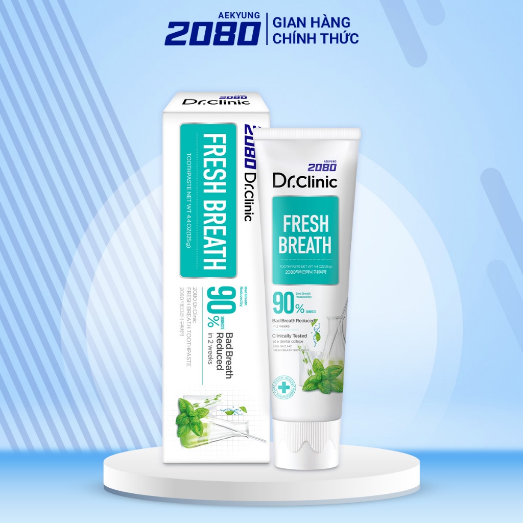 - Hỗ trợ giảm hôi miệng, đem đến hơi thở thơm mát, sảng khoái. Kem đánh răng 2080 Dr.Clinic Fresh Breath Toothpaste