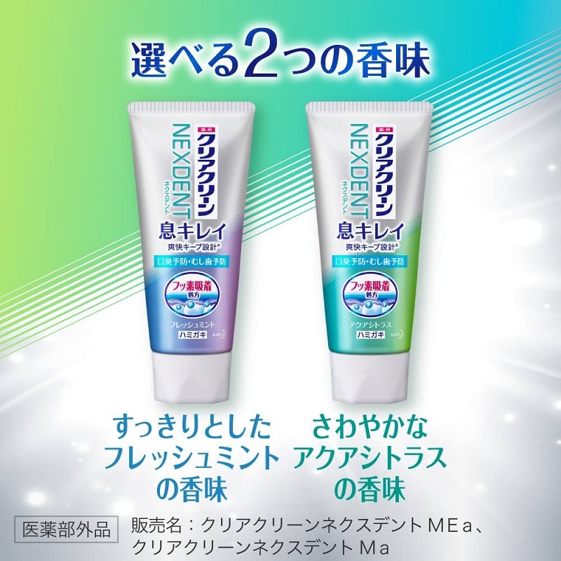 ❉ Xuất xứ: Nhật Bản | MADE IN JAPAN ❉ NSX: Kao Corporation Co., Ltd (Japan) ❉ Model: • KM-2021551 Clear Mint 120g • KM-2103730 Apple Chamomile 120g • KM-2211308 Fresh Mint 110g • KM-2211316 Aqua Citrus 110g ❉ Kích thước: 40 × 63 × 147 mm ❉ Thành phần: • Bazơ, sorbit, anhydrit silic, hạt Wa, cellulose PEG-12, natri florua (flo), kali hydroxit(A), dinatri photphat, natri hydroxit, lauryl sulfat, POE sorbitan stearate, CMC Na, Xanthan gum, hương táo, hương bạc hà (tùy từng vị) ❉ Công dụng: • Dùng để vệ sinh răng miệng một cách sạch sẽ, cho hơi thở thơm tho, sảng khoái • Chất làm sạch từ hạt Wa loại bỏ mảng bám hiệu quả, cùng hàm lượng muối giúp làm sạch răng ưu việt, phục hồi độ trắng tự nhiên của răng • Làm sạch mảng bám, cho răng trắng sáng • Bảo vệ men răng, phòng chống sâu răng • Ngăn ngừa các bệnh về nướu và hôi miệng • Hương táo/ hương bạc hà tươi mới cho cảm giác sảng khoái dài lâu ❉ Cách dùng: • Lấy một lượng vừa đủ lên bàn chải rồi đánh nhẹ nên hàm răng, lặp đi lặp lại nhiều lần, chải đều khắp các khoang miệng • Cuối cùng súc miệng lại với nước