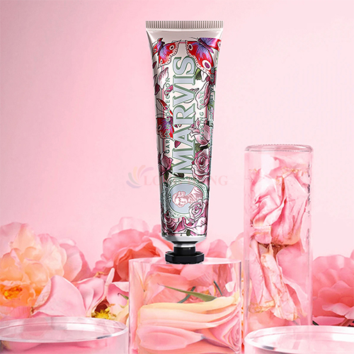 - Chứa Fluoride và Xylitol giúp ngăn ngừa sâu răng, kiểm soát hệ vi khuẩn đường miệng. Mùi hương: Bạc hà châu Âu kết hợp cùng hương hoa ly thanh khiết **Kem đánh răng Marvis (75ml) - Kissing Rose: Được ví như biểu tượng của tình yêu, hoa hồng Bulgaria gây xao xuyến bởi vẻ đẹp lộng lẫy và hương thơm quyến rũ. Là một sáng tạo kết hợp giữa vị hoa hồng ngọt ngào và bạc hà châu Âu mát lạnh, kem đánh răng Kissing Rose đánh thức những rung cảm lãng mạn bên trong tâm hồn yêu hoa. Thành phần: Calcium Carbonate, Glycerin, Aqua (Water/Eau), Hydrated Silica, Aroma (Flavor), Xylitol, Cellulose Gum, Sodium Lauryl Sulfate, Titanium Dioxide, Sodium Saccharin, Sodium Fluoride, Citric Acid, Sodium Citrate, Geraniol, Citronellol. Công dụng: