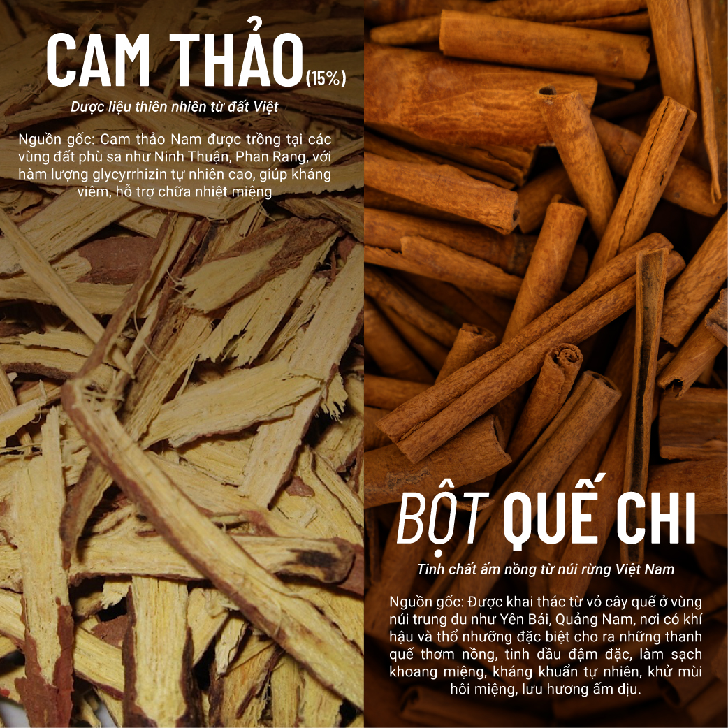 ✨Kem Đánh Răng Thảo Dược Thuần Chay Quế Cam Thảo - Sạch Mảng Bám, Giảm Ê Buốt 60 Gram