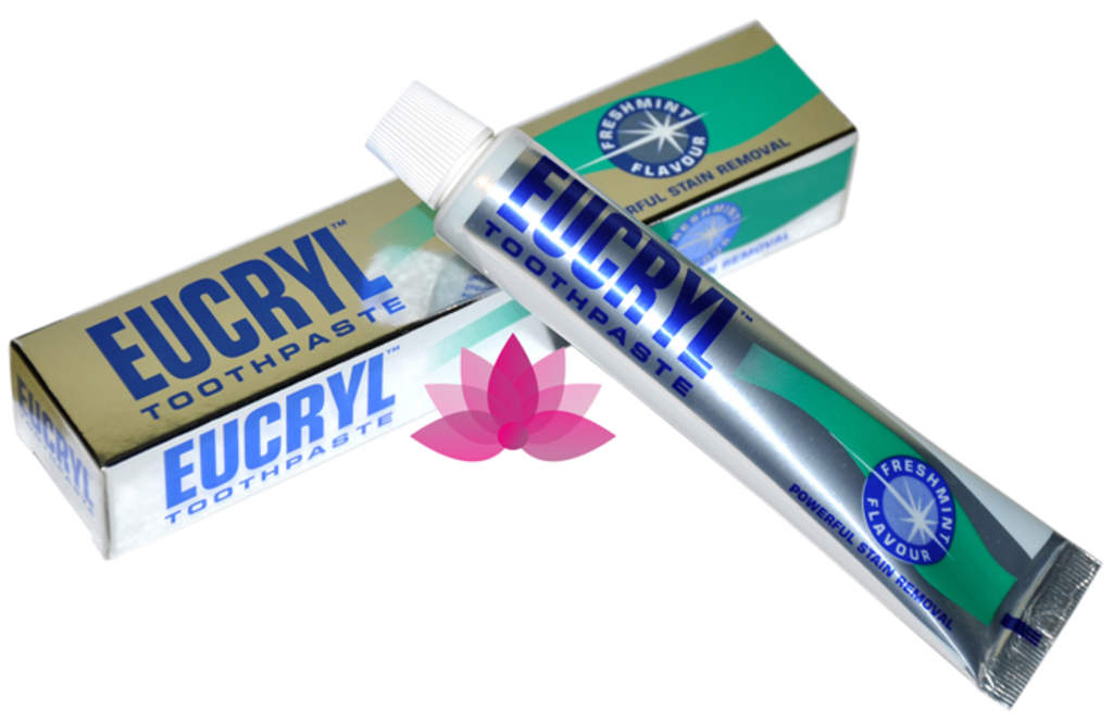 - Kem đánh răng trắng răng Eucryl Tooth Paste giúp làm trắng răng hiệu quả. Ngoài ra sản phẩm Eucryl còn có công dụng giúp hơi thở thơm mát và tránh việc hình thành các mảng bám trên răng.
