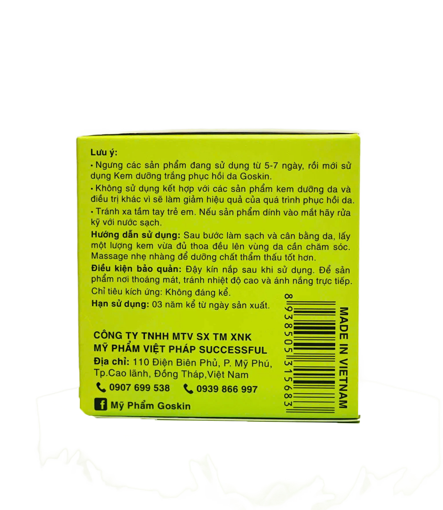 • Ngưng các sản phẩm đang sử dụng từ 5-7 ngày, rồi mới sử dụng Kem dưỡng trắng phục hồi da Goskin.