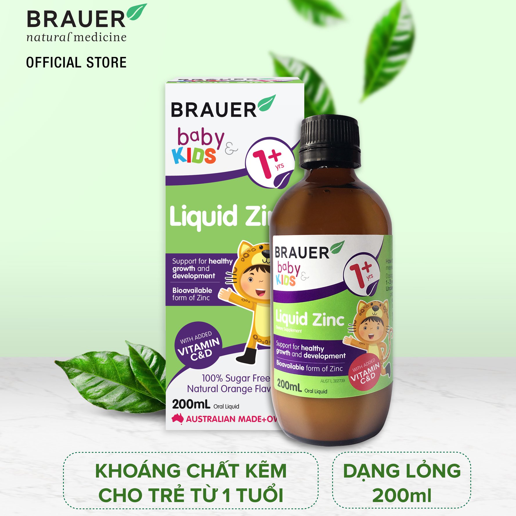 Brauer Liquid Zinc hỗ trợ sự tăng trưởng và phát triển lành mạnh với một dạng kẽm sinh học, là chất xúc tác và điều hoà hoạt động của hơn 300 enzyme. Đồng thời nó cũng tham gia vào quá trình chuyển hóa thức ăn hỗ trợ bé ăn tốt hơn.