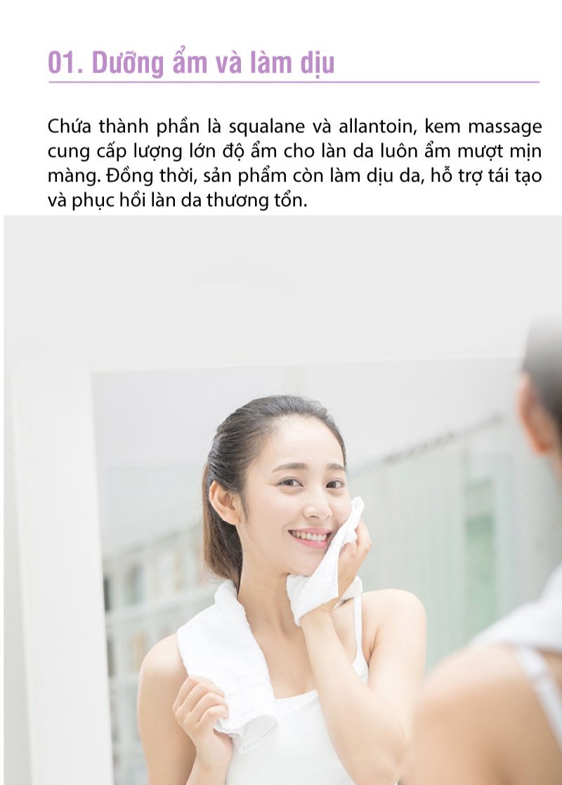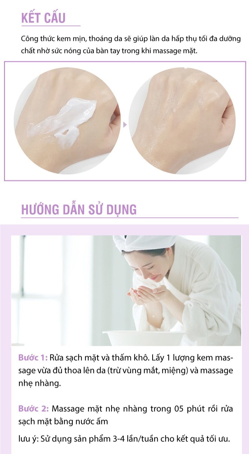 - Massage nhẹ nhàng cho làn da mềm mịn.