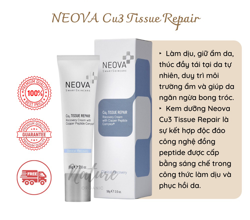 Thấu hiểu nhu cầu của khách hàng, hãng – Mỹ đã nghiên cứu và cho ra đời dòng Neova Cu3 Tissue Repair. Đây là dòng kem dưỡng siêu phục hồi da tổn thương sau laser, bỏng hay lăn kim đã nhận được sự đánh giá tích cực từ các chuyên gia cũng như những khách hàng đã sử dụng qua.