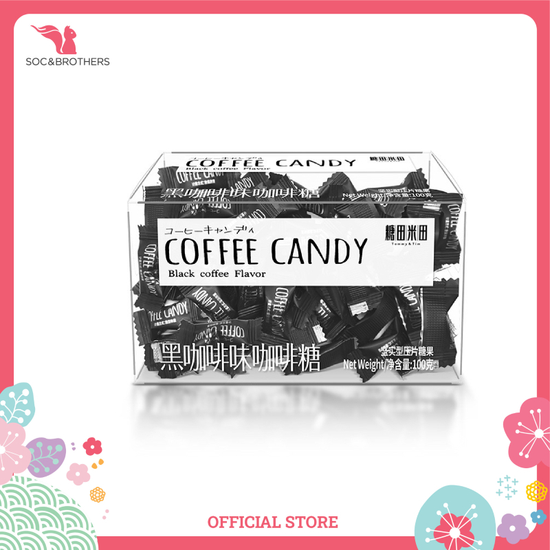 Kẹo cà phê đen Tommy & Tim 100g mang hương vị đậm đà của cà phê Robusta nguyên chất, với vị đắng tự nhiên, dễ thưởng thức, phù hợp cho người yêu thích cà phê.