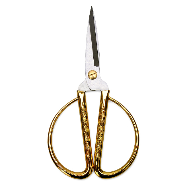 Kéo cán vàng RP siêu bền siêu bén thiết kế nổi bật với phần tay cầm sang trọng, khắc hình rồng và phụng tinh xảo, độc đáo.