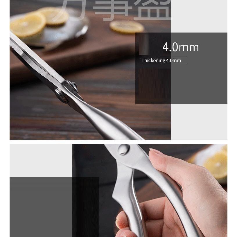 Lưỡi kéo được làm từ chất liệu thép siêu bền, chống gỉ, sạch sẽ, cắt gà, vịt nhanh chóng, dễ dàng