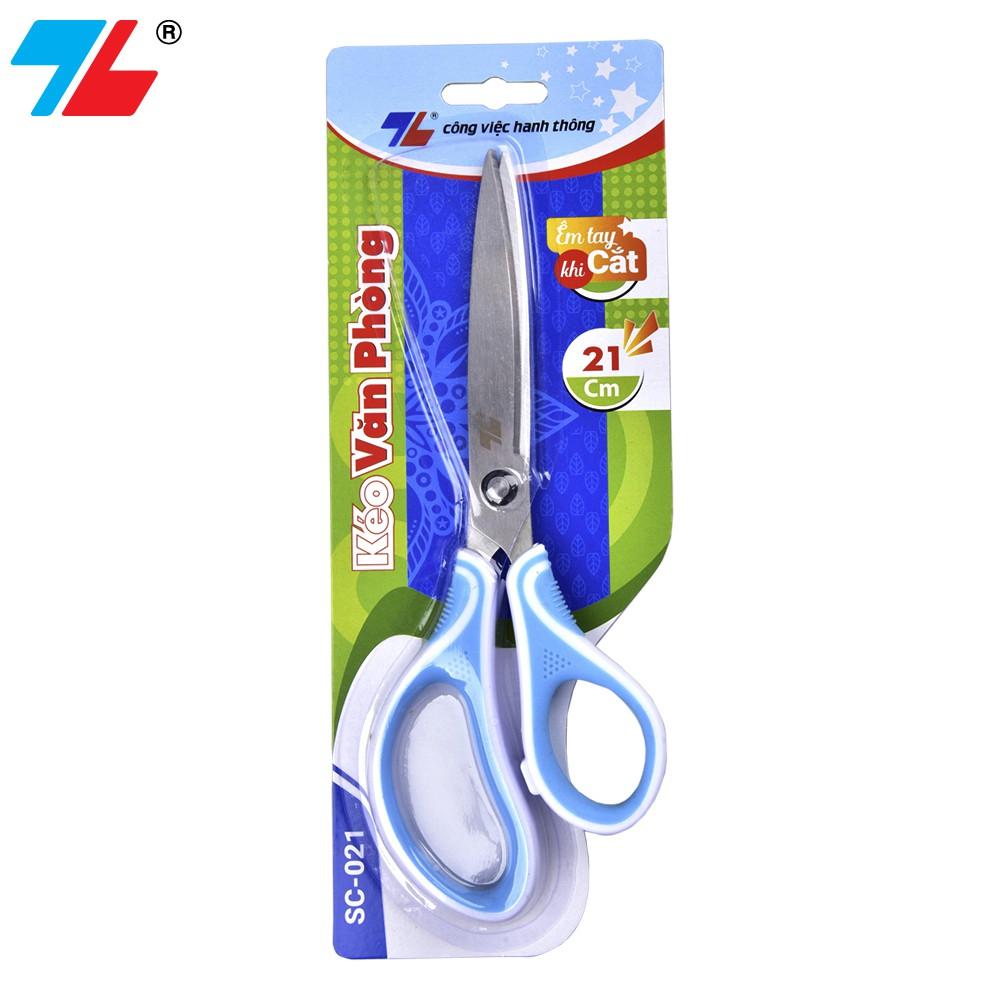 Mua tại TiktokMô tả sản phẩm Thông số kĩ thuật : Thương hiệu Thiên Long Kích thước 210 (mm) Trọng lượng 73 gram Quy cách 1 cái/vỉ Tính năng nổi bật: Kéo văn phòng Thiên Long SC-021 có cán làm từ nhựa PP/TPR, thân làm bằng thép không gỉ. Kéo văn phòng Thiên Long SC-021 phù hơp cho học sinh, sinh viên, văn phòng và gia đình. Kiểu dáng trang nhã, màu sắc xanh pastel cá tính. Công dụng: Dùng để cắt giấy. Đặc điểm nổi bật: Kéo văn phòng Thiên Long SC-021 được làm bằng kim loại không gỉ, mũi kéo tròn để bảo vệ an toàn cho trẻ khi sử dụng. Tay cầm bằng nhựa giúp cắt nhẹ nhàng, không đau tay. Hai lưỡi đồng được giữ áp sát vào nhau một cách linh hoạt nhằm để giữ hai lưỡi kéo tại đúng vị trí, cho phép chúng được ép sát lại với nhau.