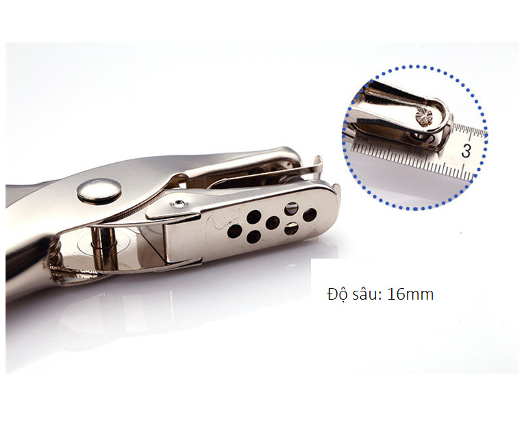 KẸP BẤM 1 LỖ KIM LOẠI Kích thước: 130*11*57mm Chất liệu: kim loại Độ sâu: 16mm Đường kính lỗ tròn: 6mm Một lần bấm được 8 tờ