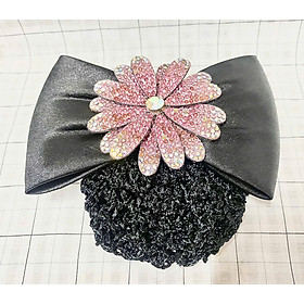✨KẸP TÓC BÚI LƯỚI MÀU ĐEN ĐÍNH HÌNH BÔNG HOA ĐÁ MÀU TÍM