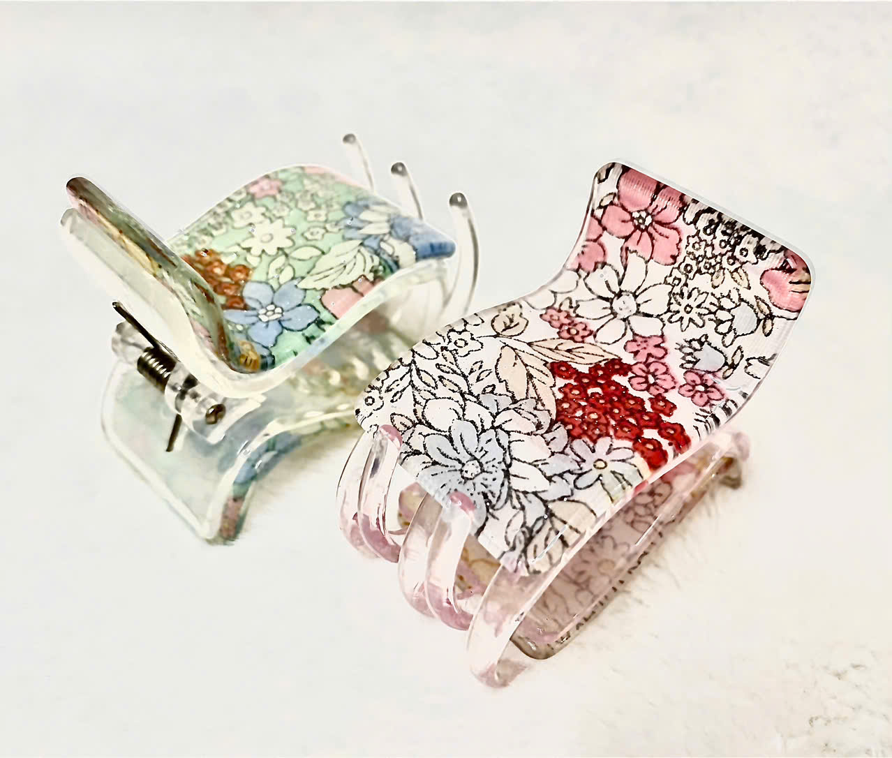 Kẹp tóc càng cua 2 lớp xịn họa tiết sang trọng phong cách Hàn Quốc Chất liệu: Nhựa loại I, mica họa tiết sang trọng, lò xo thép Màu sắc: Có nhiều màu lựa chọn
