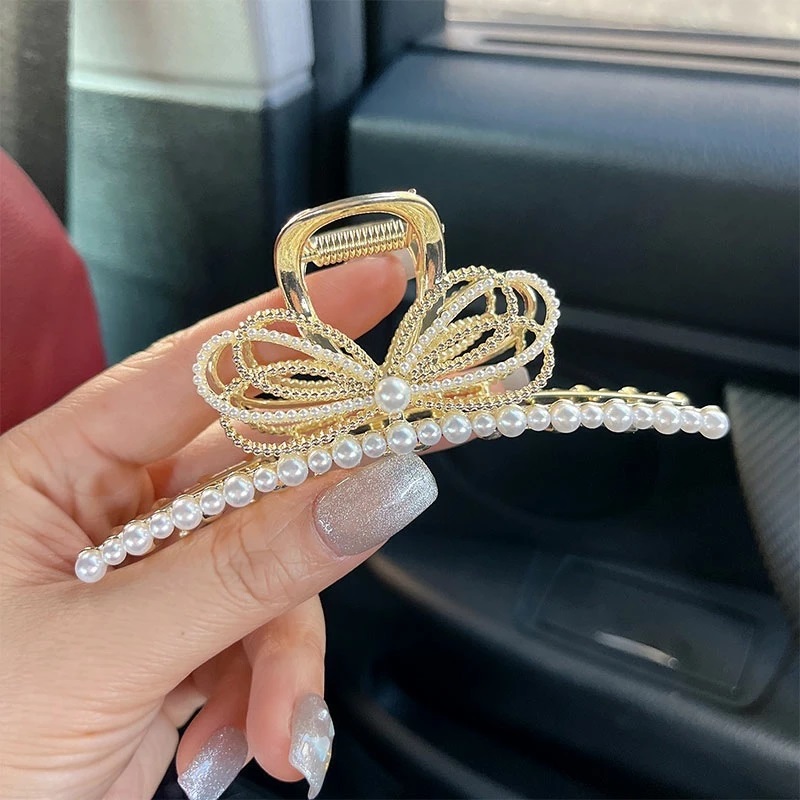 ✨Kẹp tóc dạng dài ngọc trai nơ